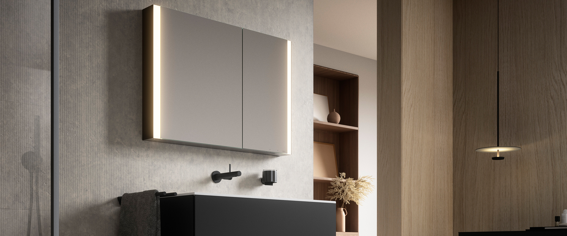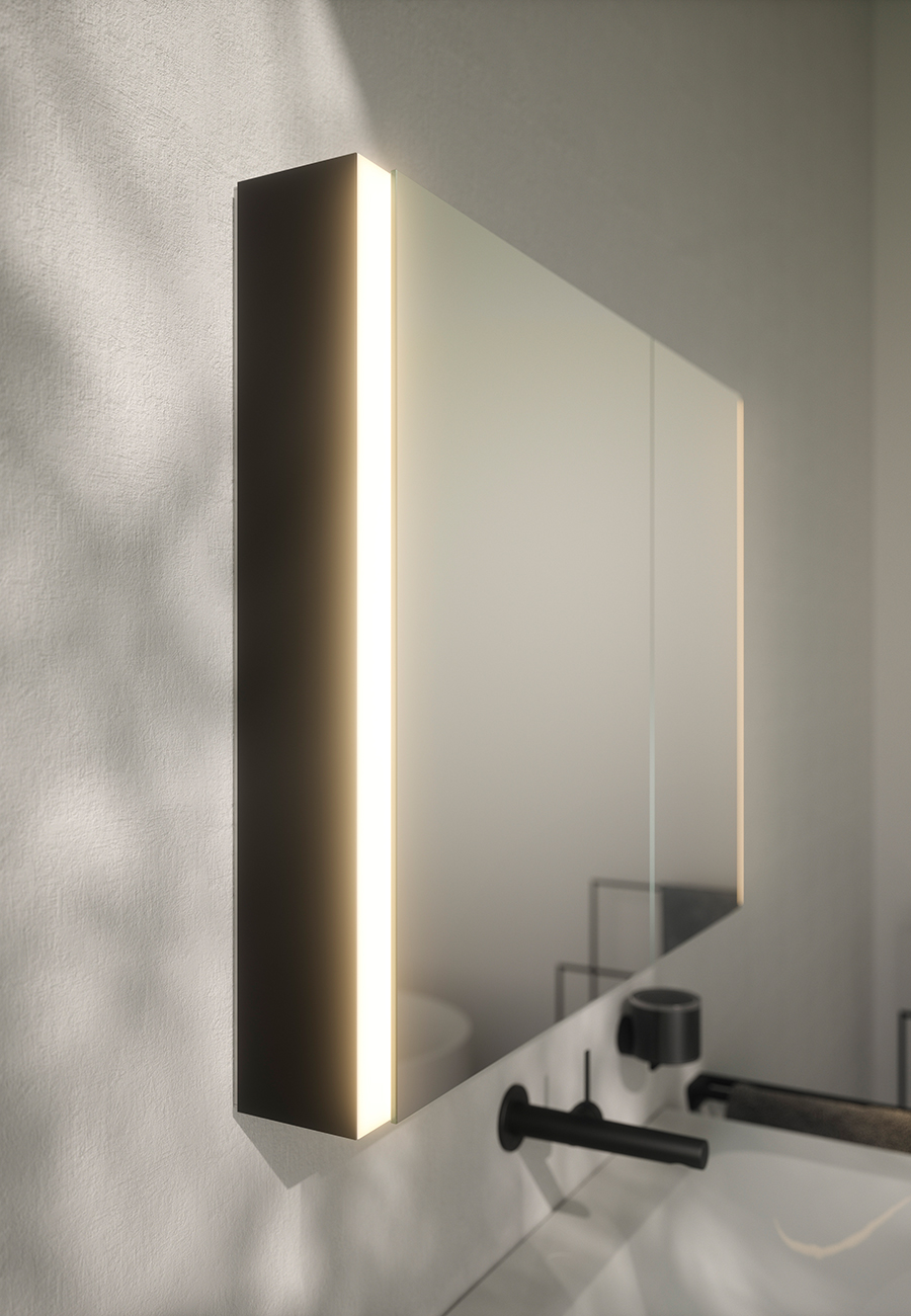 Designinnovation: Spiegelschrank gerahmt von einem homogenen Lichtband