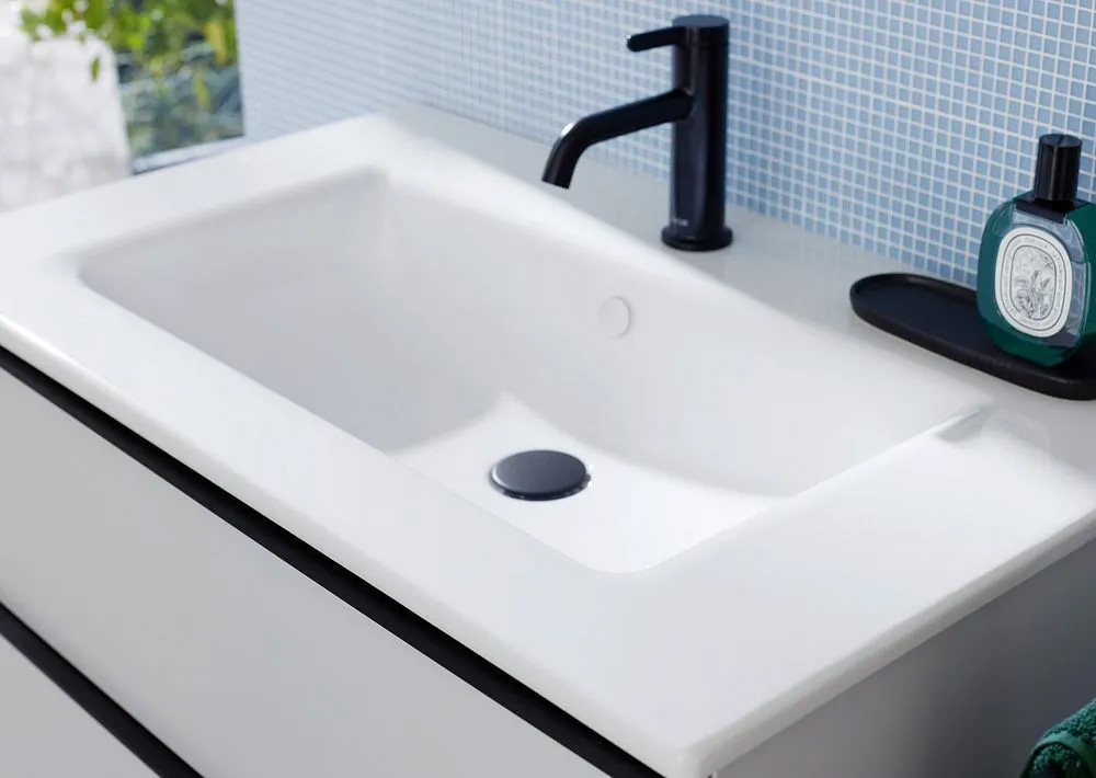 Das Design von Sinea 3.0 wirkt harmonisch und gro.zügig. Durch sein asymmetrisch tiefenreduziertes Layout lässt sich das Waschtisch-Ensemble aber auch raumsparend in kleinen Bädern und engen Raumsituationen einsetzen. Sinea 3.0 schafft dabei mit einer einheitlichen Waschtischkombinationshöhe von 540 mm reichlich Stauraum und lässt gleichzeitig komfortablen Bewegungsfreiraum ohne störende Ecken und Kanten: weich geschwungen, nahbar, einladend.